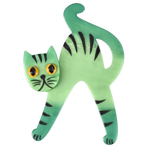 Pearl Green Cello Cat Brooch D