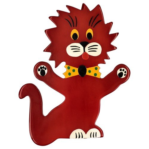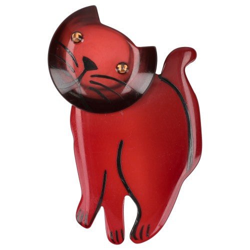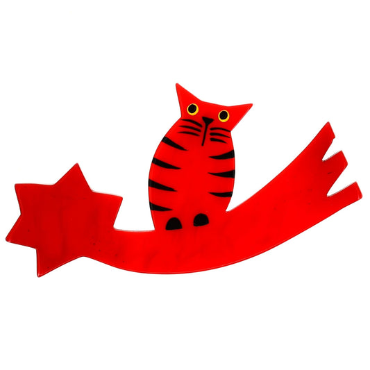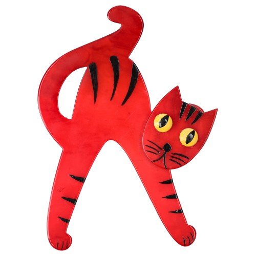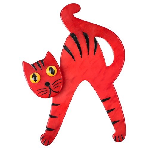 Red and Black and white striped Sinbad Cat Brooch (large size)