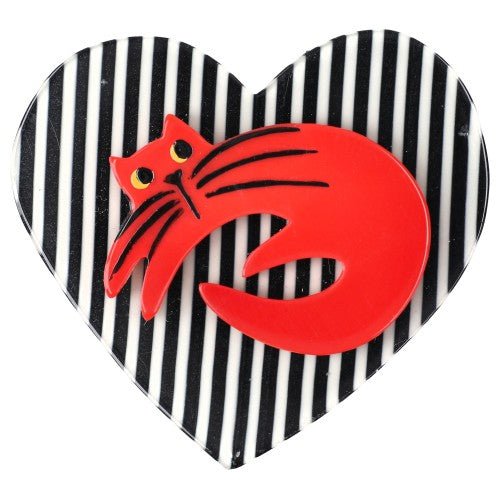 Rainbow Catt on Pearly Red Heart Brooch (small size)