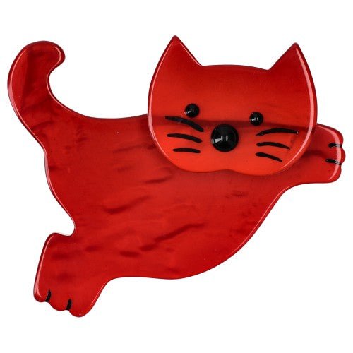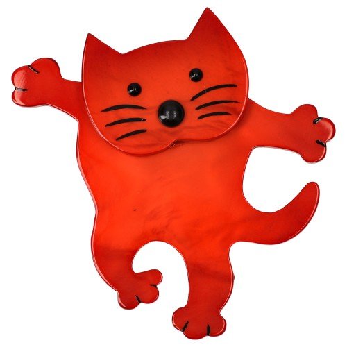 Raspberry Red and Light Pink Jumpy Cat Brooch GM