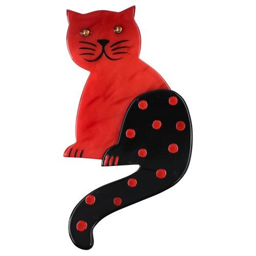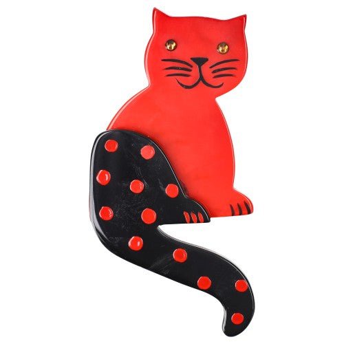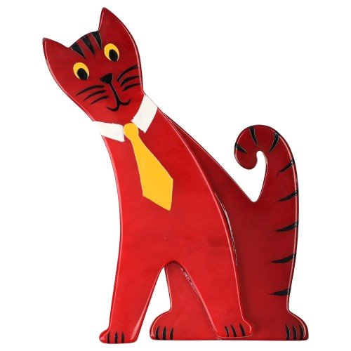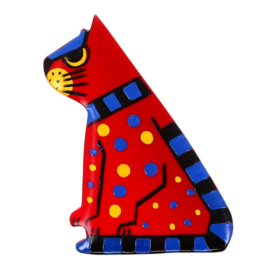 Red and Ochre Yellow Sinbad Cat Brooch (small size)