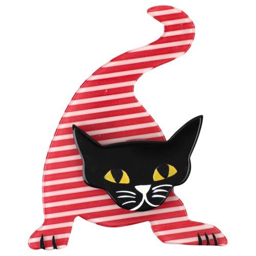 Red and White with stripes and polka dots Mirko Cat Brooch