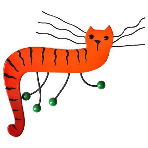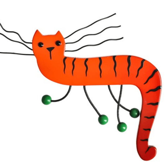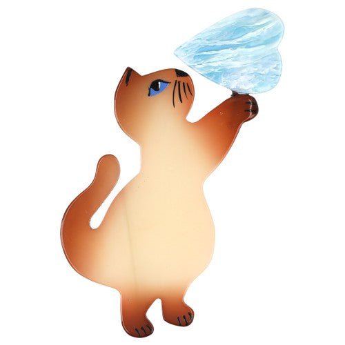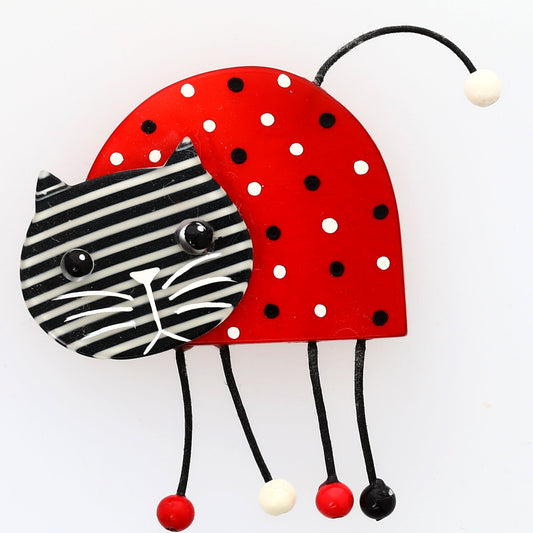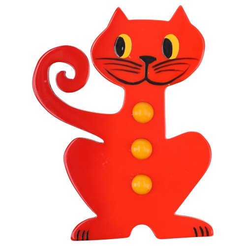 Red Standing Cat Brooch with black and white striped heart (small model)