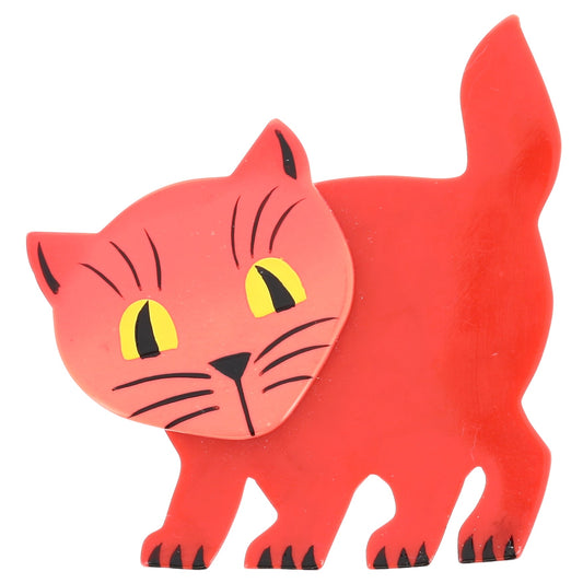 Red Standing Cat Brooch with black and red heart (black Heart)