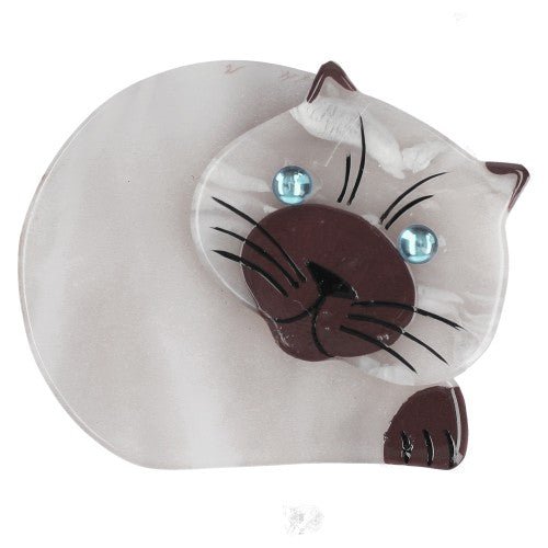 Red Standing Valentine Cat Brooch with a Striped black and white Heart