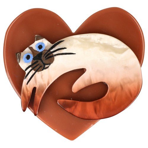 Beige Siamese Cat on Milk-Caramel Heart Brooch (small size)