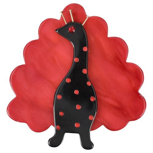 Black with red polka dots and Red Peacock Bird Brooch