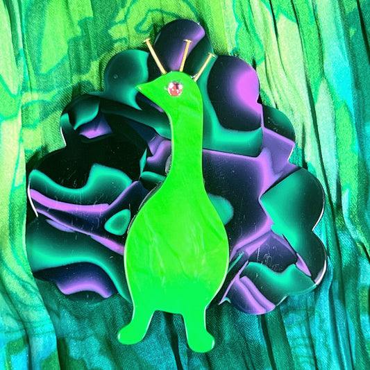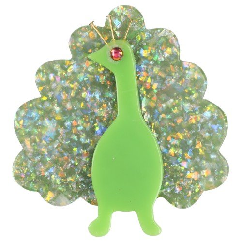 Green and Bright Almond Green Peacock Bird Brooch