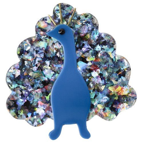 Iridescent Blue and Blue Peacock Bird Brooch