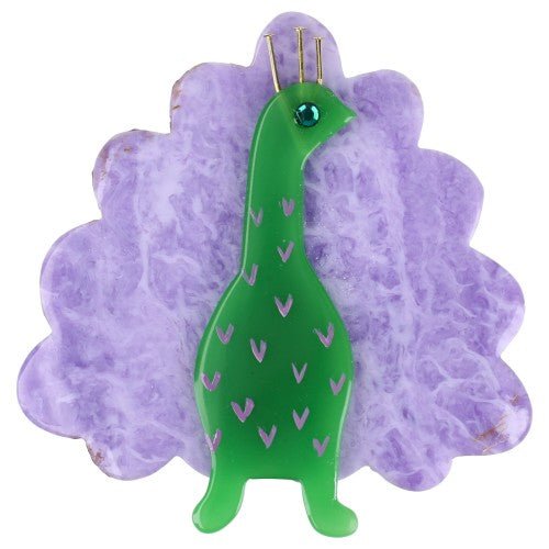 Mint Green and Lilac Peacock Bird Brooch