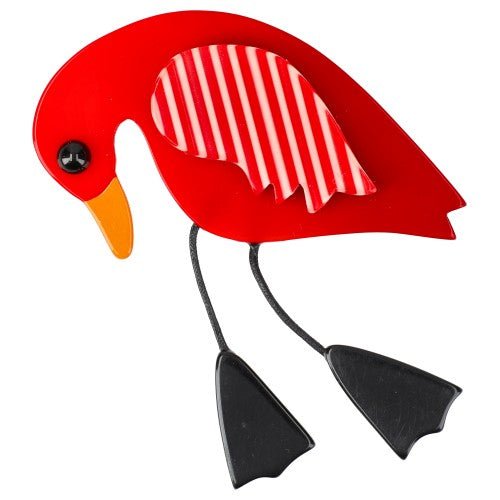 Red and Striped Twisty Bird Brooch with Black Feet