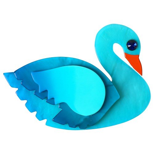 Aquamarine and Deep Ocean Blue Swan Bird Brooch