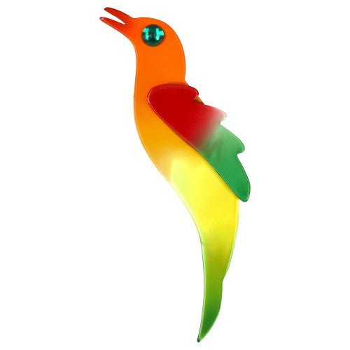 Red, Orange and Black Rainbow Parakeet Bird Brooch