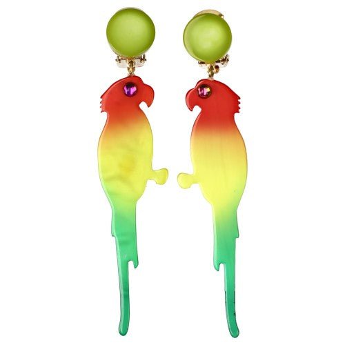Orange, Yellow, Green Rainbow Colors Parrot Bird Earrings