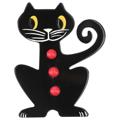 Black and White Cat on Pearly Red Heart Brooch (small size)