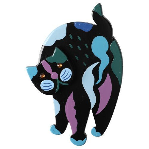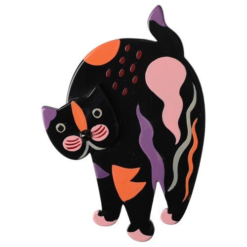 Rainbow Catt on Pearly Red Heart Brooch (small size)