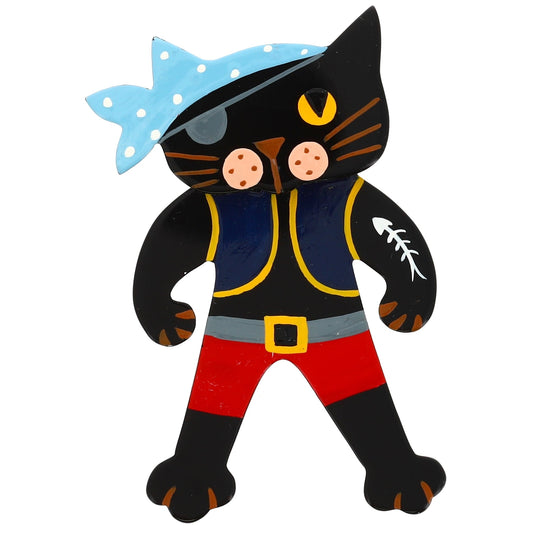 Black, blue and yellow Bandit Cat Brooch