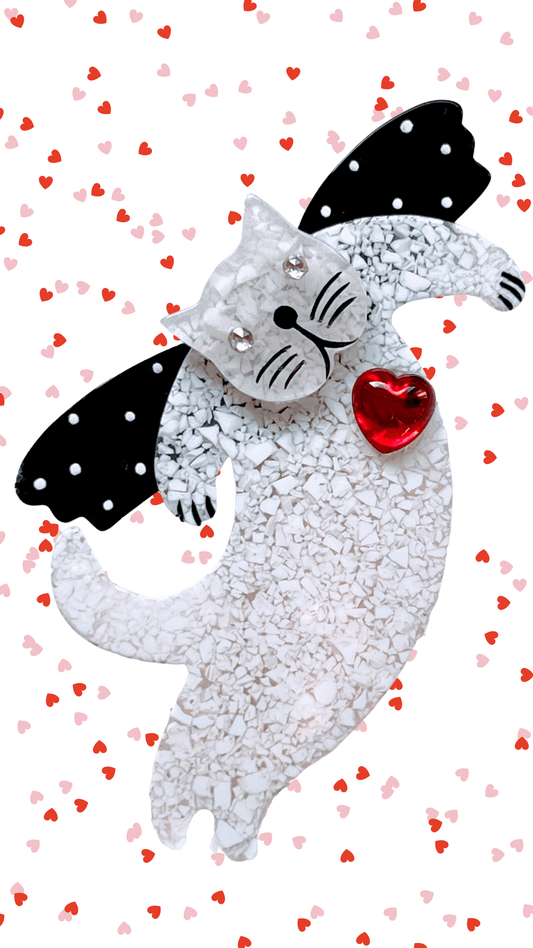Black and Red Fish Cat Brooch