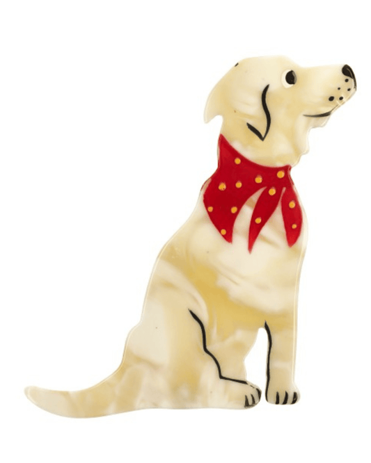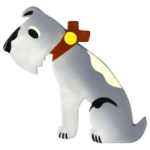 Pearly White, Red and Black Checkered Coat, Yellow Collar, Jano Dog Brooch