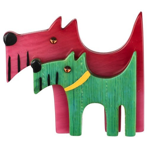 Cyclamen Pink and Anise Green Double Dog Brooch (Left)