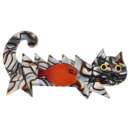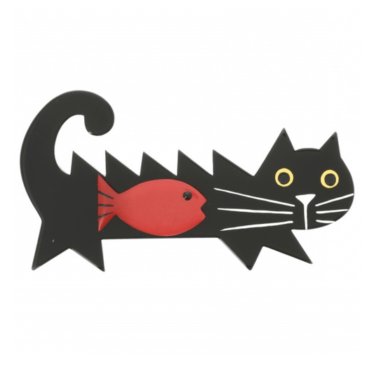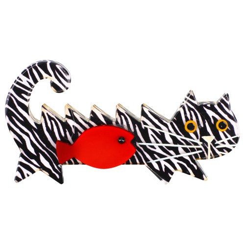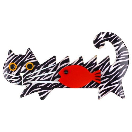 Black-White Zebra with Red Fish Cat Brooch (Left)