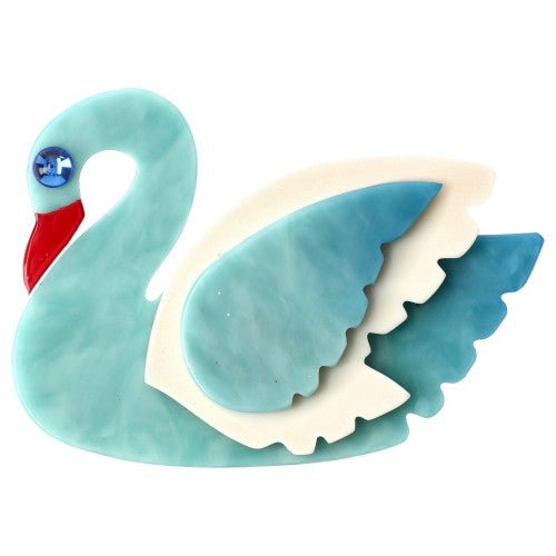 Inspired by the beauty of open skies, the Azur Blue with White Wing Swan Bird Brooch combines vibrant blue with a delicate white wing for a refined, ethereal touch. Handcrafted in galalith and expertly hand-painted, this brooch is a striking addition to any collection.