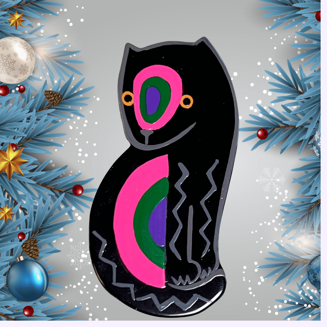 Black, Pink, Green and Purple Sonia Cat Brooch