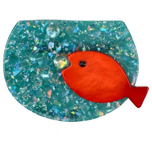 Brilliant Ocean Blue Aquarium Brooch with a Red Fish