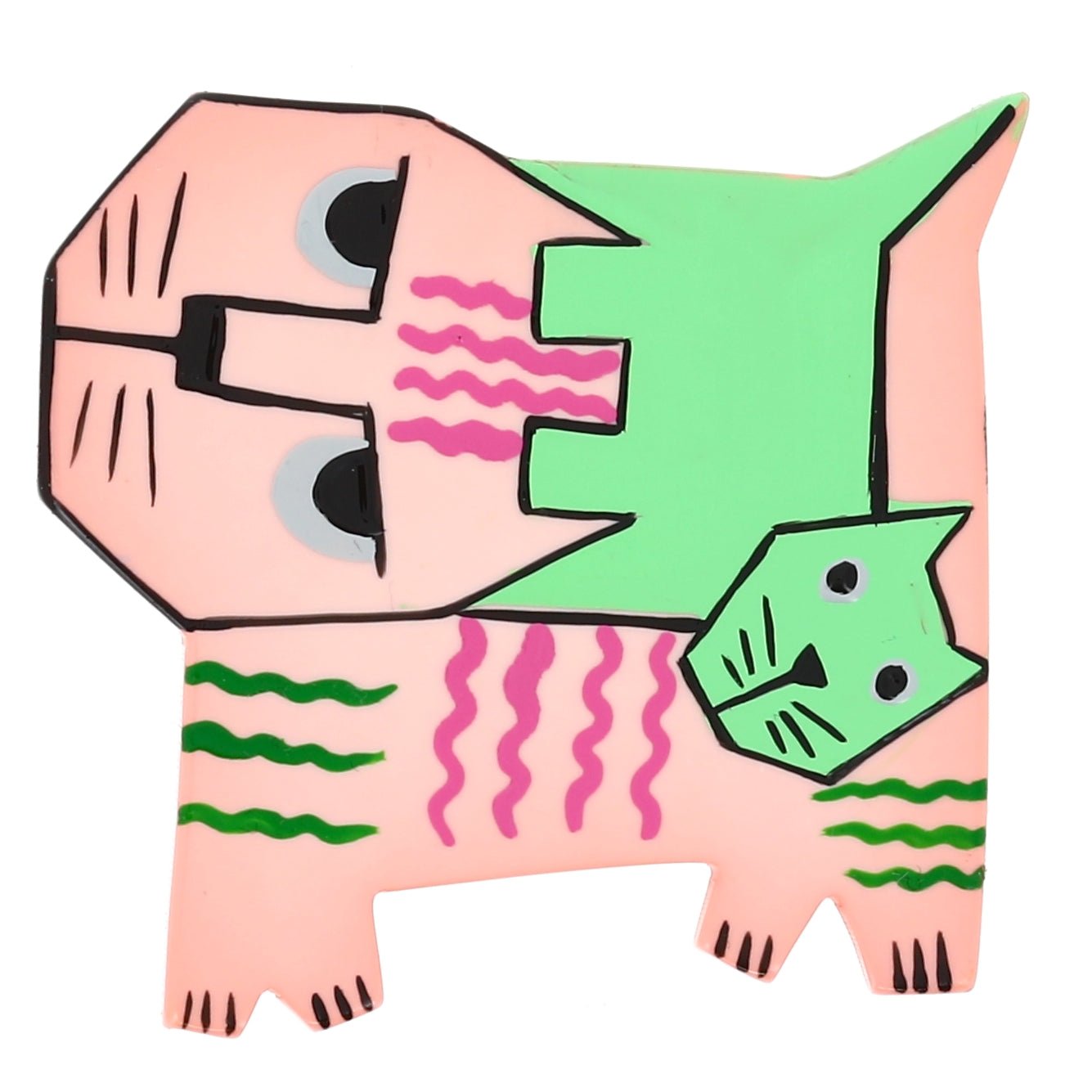 Light Pink and pistachio Picasso Cat Brooch (large size)