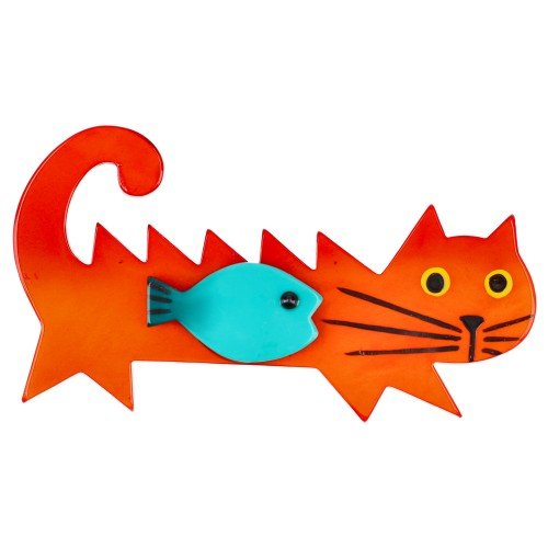 Orange et Turquoise Fish Cat Brooch