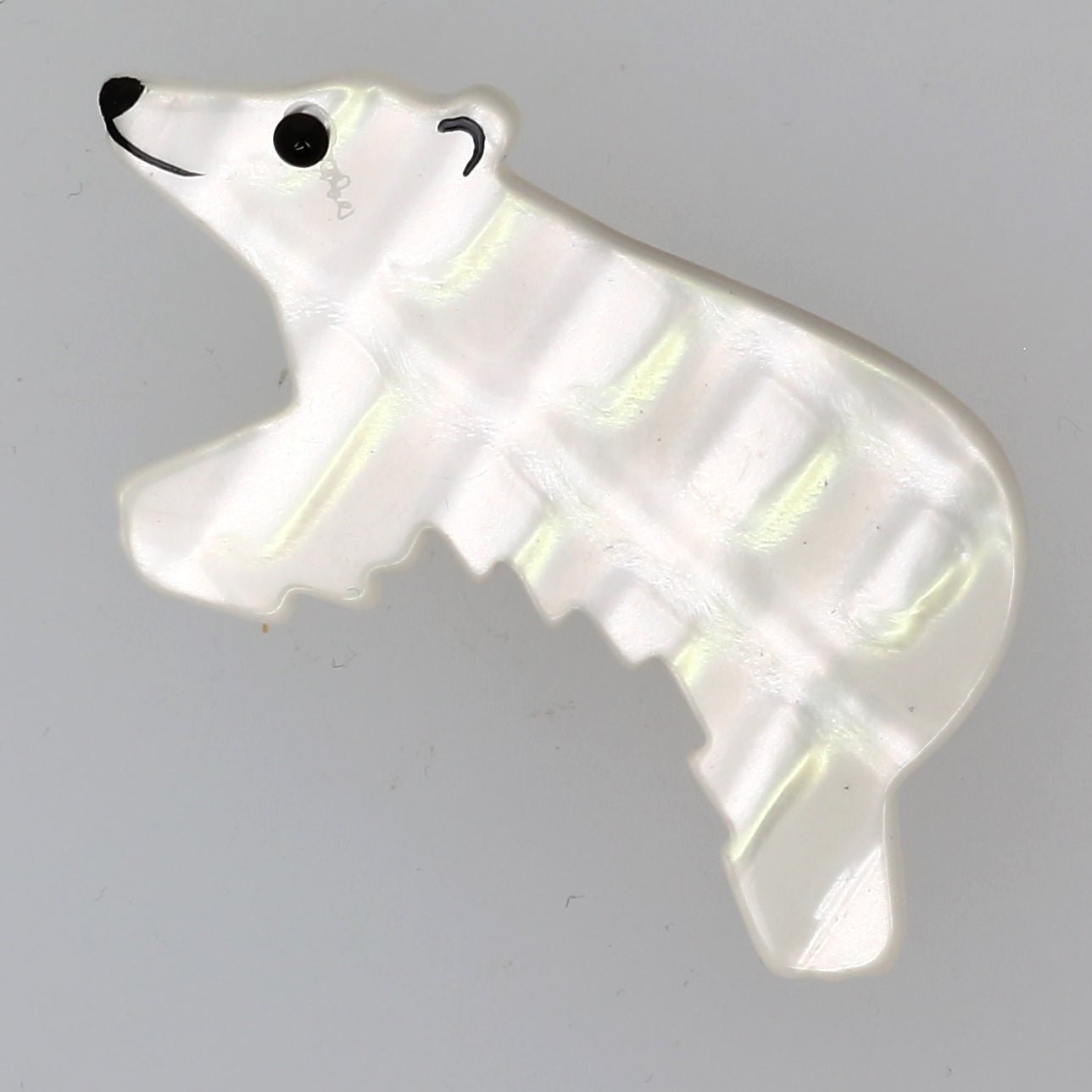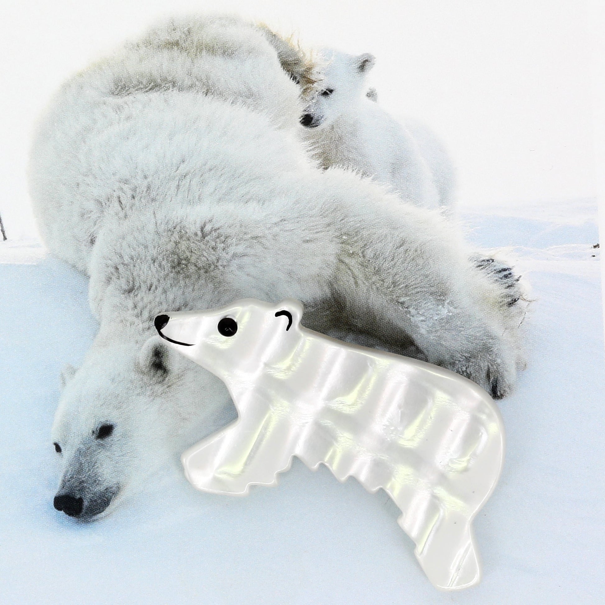 The White Boreal Canada Bear Brooch (Small size) is a one-of-a-kind, handcrafted galalith piece. This brooch features a pristine white color, perfect for a minimalist and elegant look.