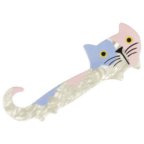 White, Pink and Azur Blue Yukiko Cat Brooch